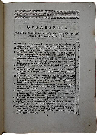 В данном сборнике можно найти важные указы, касающиеся, среди прочего, рыбы стерляди и правил её ловли, а также разрешения на строительство шлубок при партикулярных верфях и в Адмиралтействе для использования на реке Неве. Кроме того, здесь размещён указ о новой золотой и серебряной монете.
