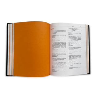 Формат 215*270*40 мм, 373 страницы с фольгированным тиснением и фотопечатью на коже обеспечивают стиля и качества. Трехсторонний золотой обрез и кожаный переплет ручной работы придают данной книге изысканный вид.