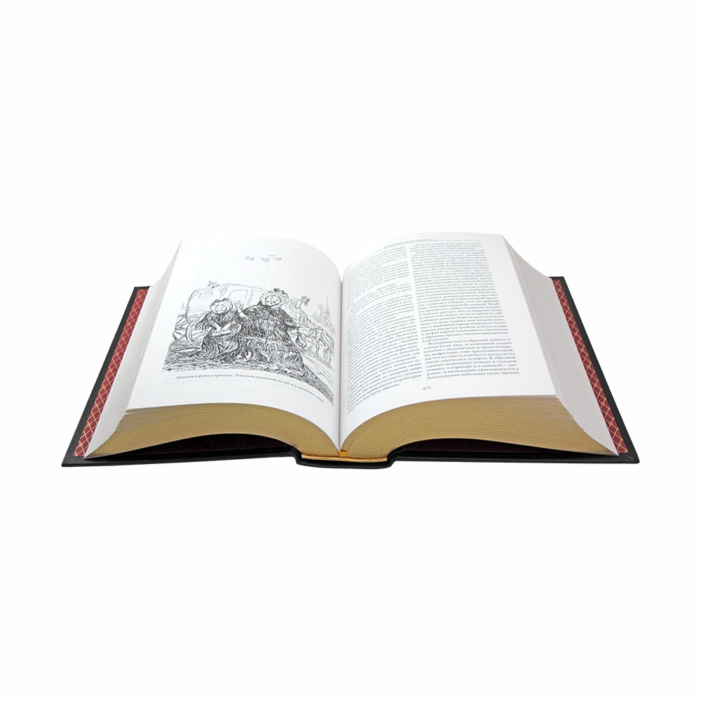 Издание оформлено в классическом европейском переплёте ручной работы, выполненном из натуральной кожи. Каждый экземпляр обладает уникальным форзацем из дизайнерской бумаги Malmero, украшенным тиснением орнамента золотой фольгой. На корешке книги вы увидите 6 бинтов ручной обработки, а каптал выполнен из золотой кожи. Обрез блока покрыт золотом с торшонированием, а тиснение терминов осуществлено как золотой, так и цветной фольгой, что придаёт книге дополнительный шик.