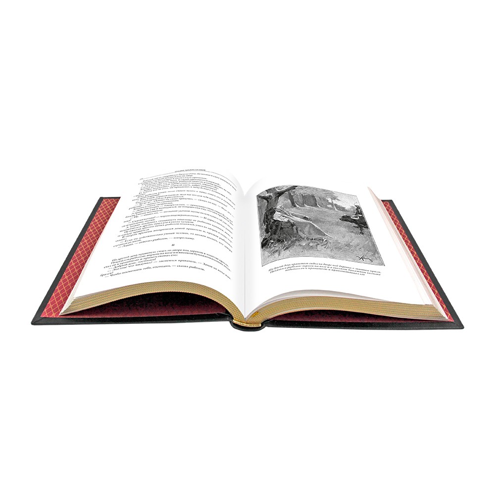 Это коллекционное издание ограничено тиражом в 100 экземпляров и станет замечательным подарком для ценителей литературы. Классический европейский переплет ручной работы выполнен из натуральной кожи, что добавляет дополнительную ценность этому произведению. Форзац из дизайнерской бумаги Malmero с эксклюзивным тиснением орнамента золотой фольгой создает неповторимый облик. Кроме того, используются 6 бинтов на корешке ручной работы, каптал золотого цвета, сделанный из натуральной кожи и обрез блока с золотом и торшонированием, что подчеркивает высокое качество издания. Тиснение блинтовое, выполненное золотой и цветной фольгой, и ляссе завершает этот поистине шедевральный подарок.