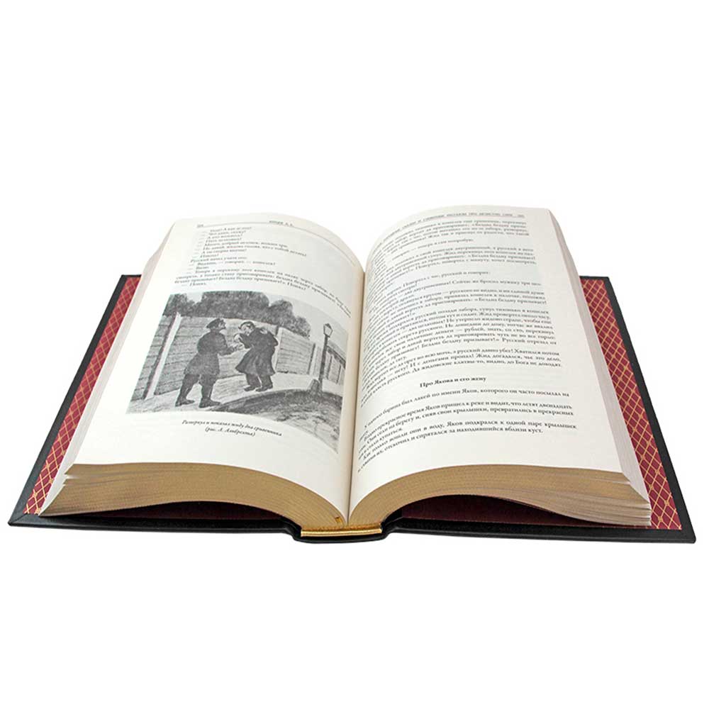 Исполнение книги выполнено по классическим европейским стандартам: переплёт ручной работы из натуральной кожи дарит ощущение премиального качества и надежности. Форзац изготовлен из дизайнерской бумаги Malmero с изысканным тиснением орнамента золотой фольгой. Особое внимание уделено деталям — шесть бинтов на корешке и ручная обработка подчёркивают высокое мастерство изготовления. Каптал выполнен из натуральной кожи с золотым эффектом, а обрез блока украшен золотом с торшонированием. Тиснение блинтовое, дополненное золотой и цветной фольгой, придаёт книге элегантный и презентабельный вид. В комплекте коллекционное ляссе, что делает издание прекрасным подарком премиум-класса.