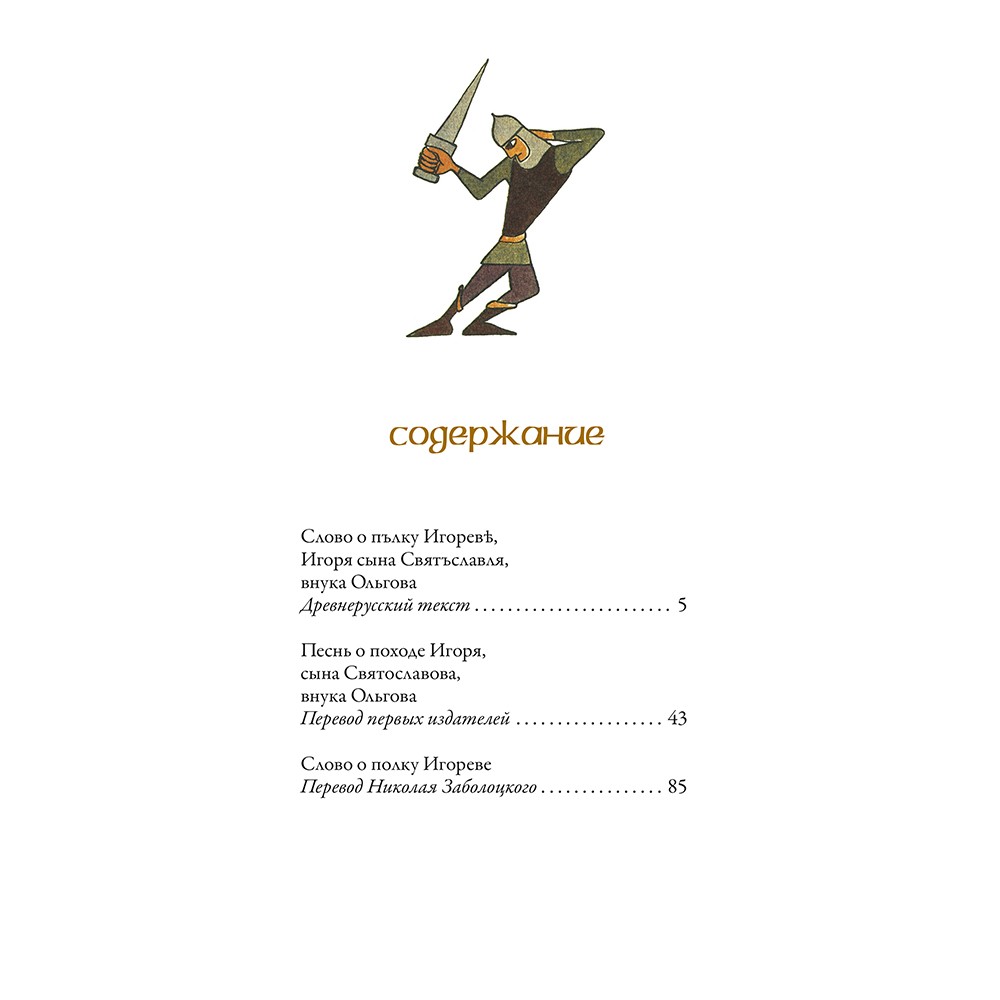 В данной коллекционной книге представлен оригинальный древнерусский текст «Слова о полку Игореве» в трех вариантах: старославянский оригинал, перевод первых комментаторов под руководством графа Алексея Мусина-Пушкина и перевод Николая Заболоцкого.