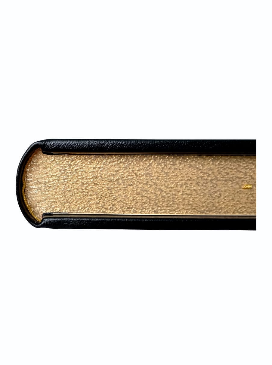 Что касается оформления, то книга имеет французский цельнокожаный переплет ручной работы на шнурах. Использование натуральной переплетной кожи обеспечивает долговечность и высокое качество. Форзац выполнен на кожаной слизуре, а дизайнерская бумага придает странице эстетический вид. Каптал двойной наборный, с ручным плетением из шелковых нитей, обрез окрашен, а ляссе выполнено из шелка. Тиснение выполнено с использованием полиграфической фольги, что добавляет эксклюзивности каждой детали.