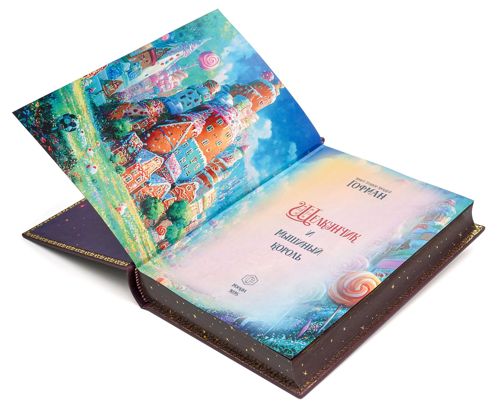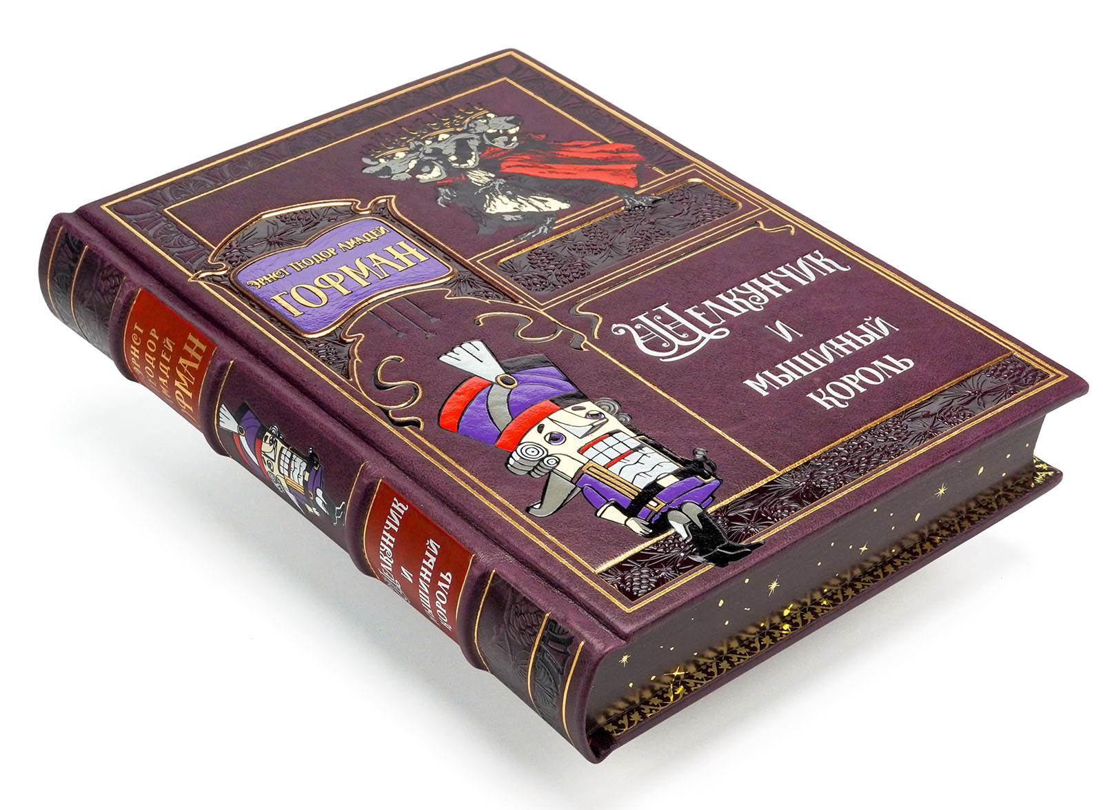 Иллюстрированное подарочное издание сказки Амадея Гофмана "Щелкунчик" выполнено в элегантном кожаном переплёте, что придаёт ему особый шарм. Книга напечатана на высококачественной дизайнерской бумаге цвета слоновой кости, а её обложка декорирована цветным рельефным тиснением на изысканной фиолетовой коже.