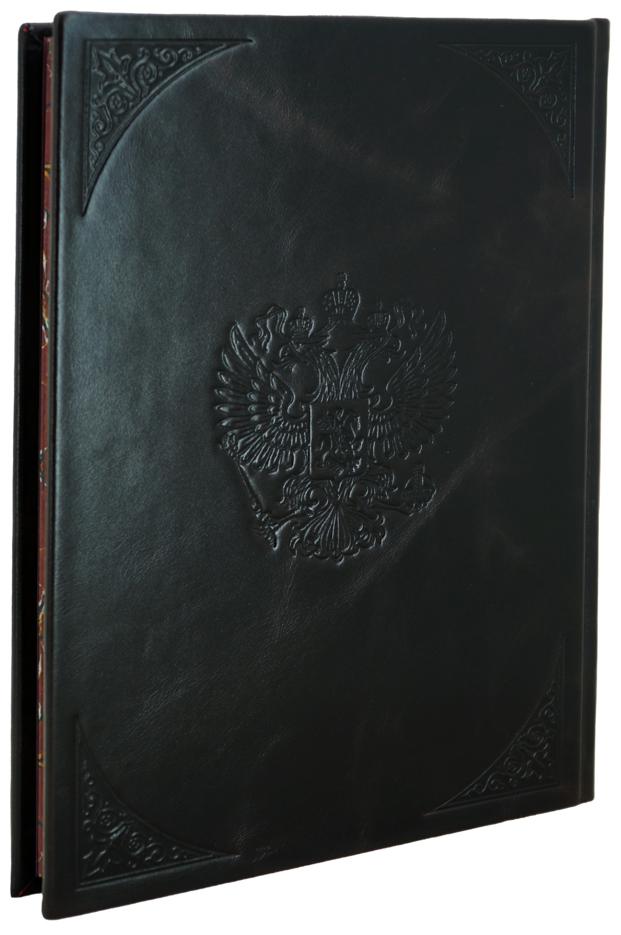 Подаочное издание имеет комбинированный кожаный переплёт, выполненный вручную. Художественная вставка представляет собой качественную печать на коже, изображающую Спасскую башню Московского Кремля, дополненную тиснением краской, золотой фольгой и глубоким блинтовым тиснением. Обрезы книжного блока оформлены узором "мрамор" в бордовых тонах, а форзацы изготовлены из дизайнерской бумаги. Завершает композицию золотой каптал, придающий изделию завершенный и элегантный вид. Эта книга станет великолепным подарком, который передает атмосферу Москвы и ее культурные сокровища.