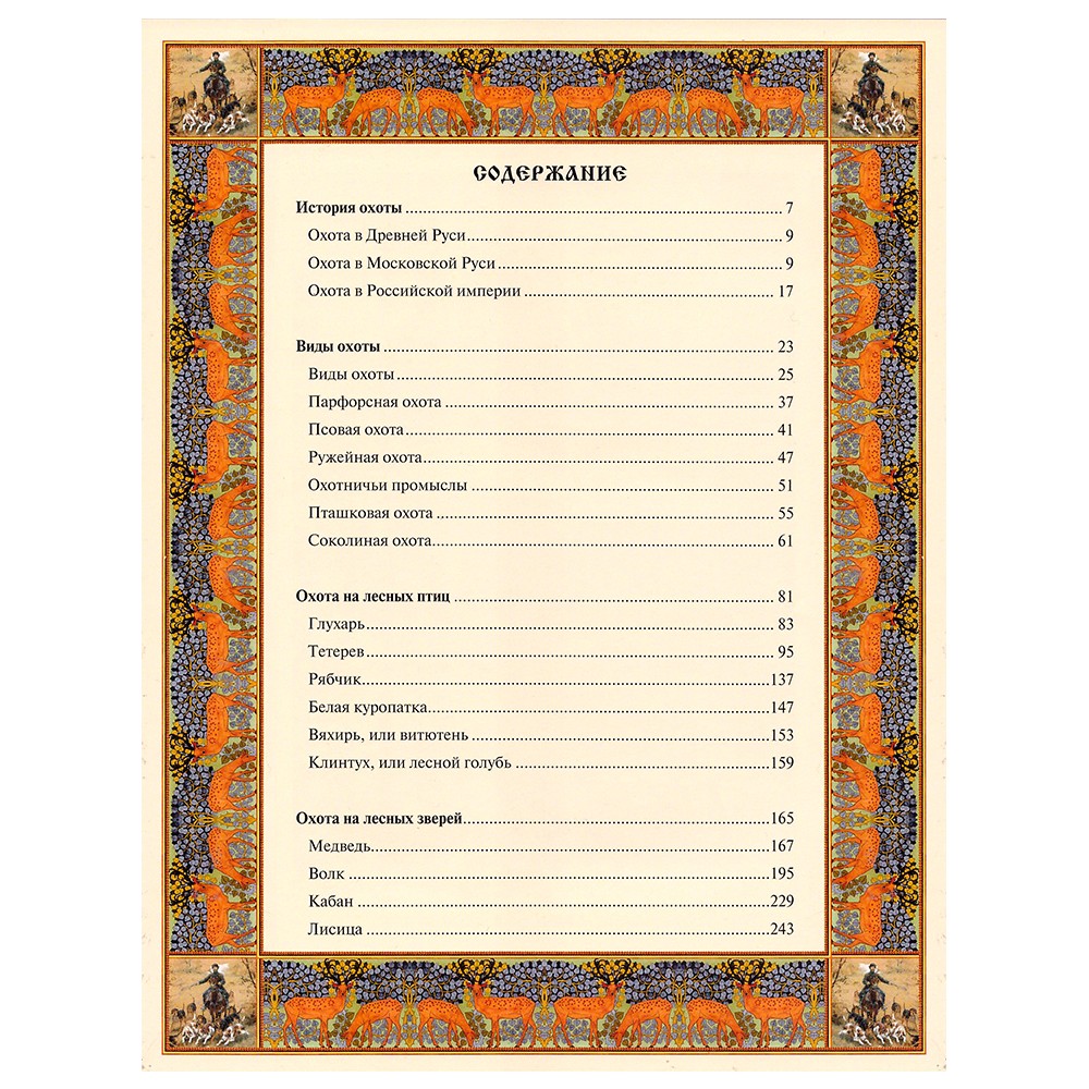Особое внимание уделено художественной составляющей – книга проиллюстрирована произведениями выдающихся русских художников, что придаёт ей эксклюзивный статус и эстетическую привлекательность. Основой для подготовки издания послужили тексты из «Энциклопедического словаря» под редакцией К. К. Арсеньева и Ф. Ф. Петрушевского, а также публикации издателей Ф. А. Брокгауза и И. А. Ефрона (Санкт-Петербург, 1890-1904 гг.). Дополнительный материал был заимствован из охотоведческих трудов М. П. Вавилова и книги В. П. Бутромеева «Верования и предания русского народа», что обеспечивает историческую достоверность и полноту информации.