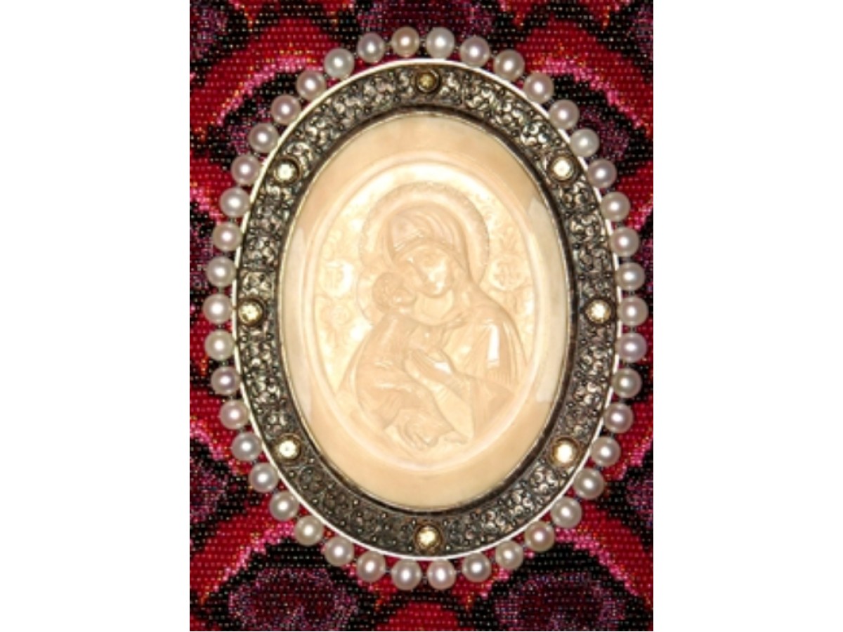 Дополнительно изделие декорировано вышивкой бисером восемь цветов и украшено ювелирными элементами из серебра 925 пробы с чернением. Общий вес серебряных деталей — 273 грамма. В отделке присутствуют цветные фианиты в количестве 26 штук и 8 желтых сапфиров. Особое украшение — культивированный морской жемчуг: 58 белых жемчужин возрастом 3 года, 176 цветных возрастом 2 года и 170 белых однолетних жемчужин.