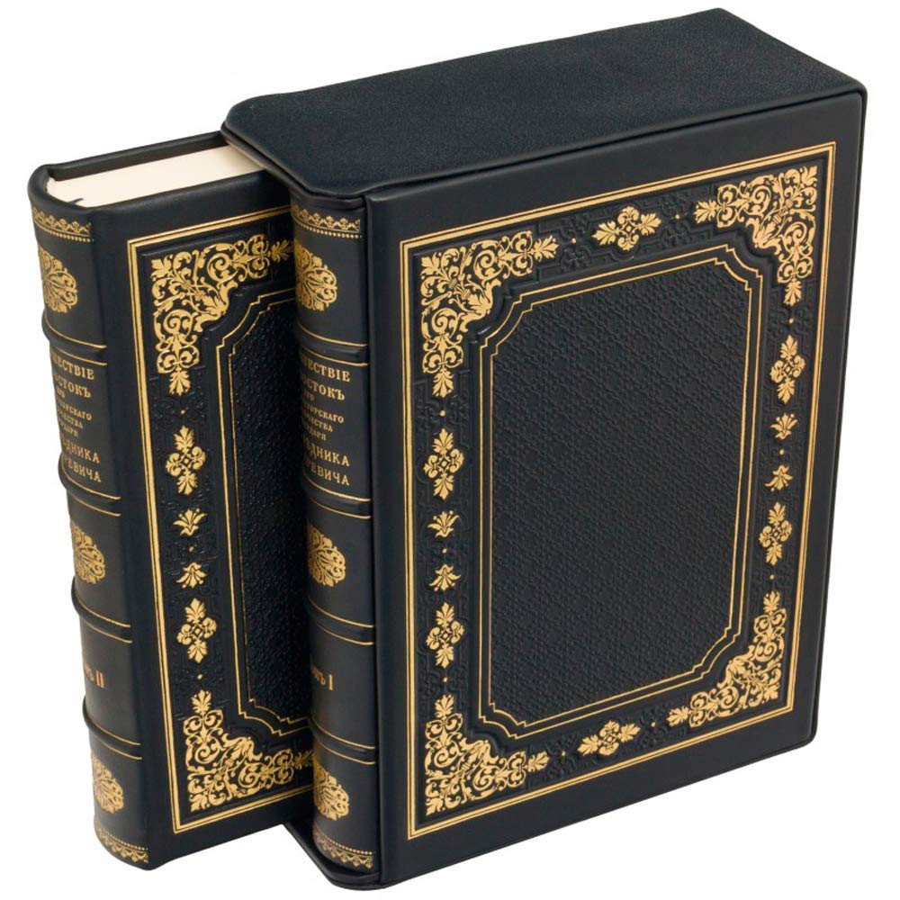 Шикарно оформленные подарочные книги выполнены из высококачественного кожаного переплета, растительного дубления производства Италии. Элементы из гальванопластики, покрытые тонким слоем серебра и золота. Эмаль. Блинт. Тиснение золотой фольгой. Ляссе.Подарочный футляр.