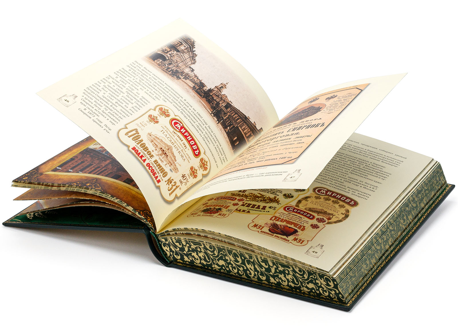 Автор уделяет особое внимание культуре потребления водки, отмечая необходимость бороться с некультурными способами использования напитка, а не запрещать само явление, ведь неумеренность всегда приводит к негативным последствиям. Подарочное издание выполнено в историческом французском стиле с шикарным кожаным переплетом. Книга украшена золотым, блинтовым и цветным тиснением, вставки изготовлены из натуральной шагреневой кожи французского производства в приятном бежевом оттенке. В оформлении используется дизайнерская бумага с бархатистым покрытием и роскошным золотым орнаментом на форзаце, а страничные блоки прошиты вручную, с отшлифованными, окрашенными и украшенными золотом обрезами.