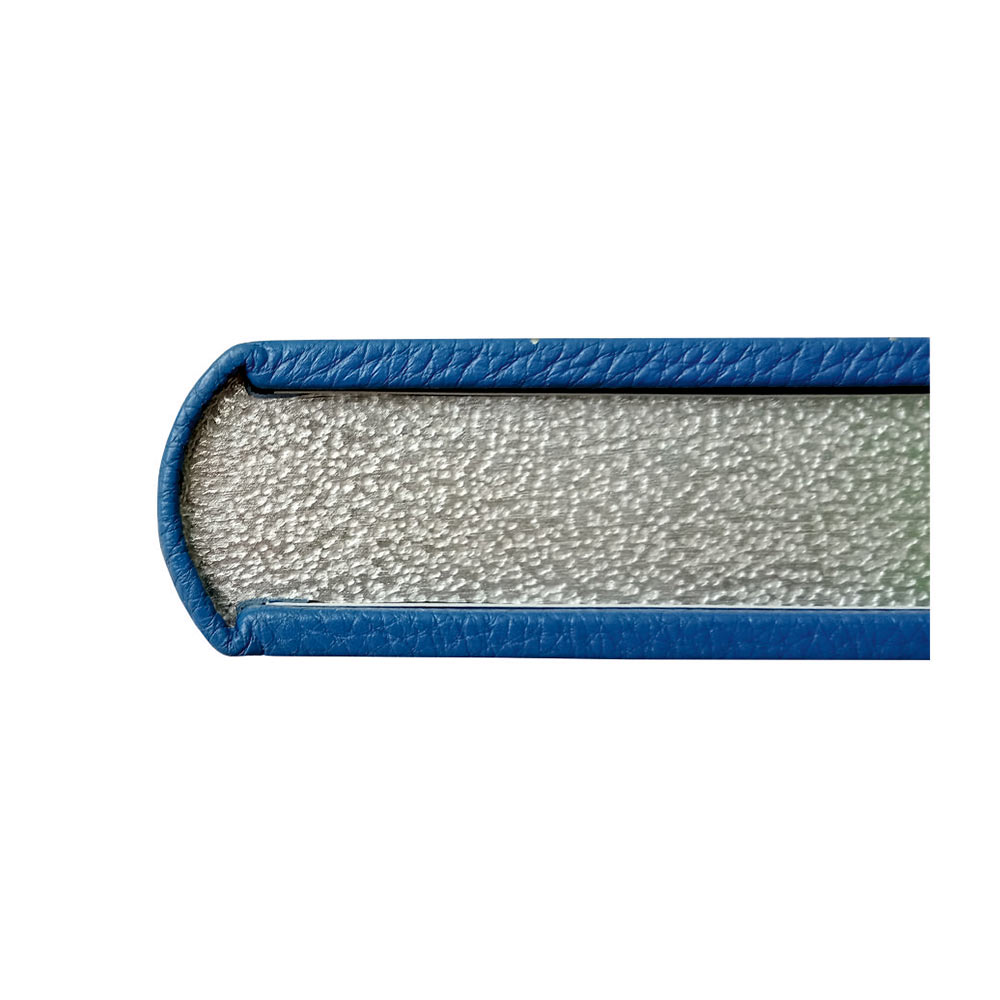 Французский цельнокожаный переплет ручной работы на шнурах. Натуральная переплетная кожа. Форзац составной на кожаной слизуре. Дизайнерская бумага. Каптал двойной наборный, ручное плетение из шелковых нитей. Обрез торшонированный серебряной фольгой. Ляссе шелковое. Тиснение полиграфической фольгой