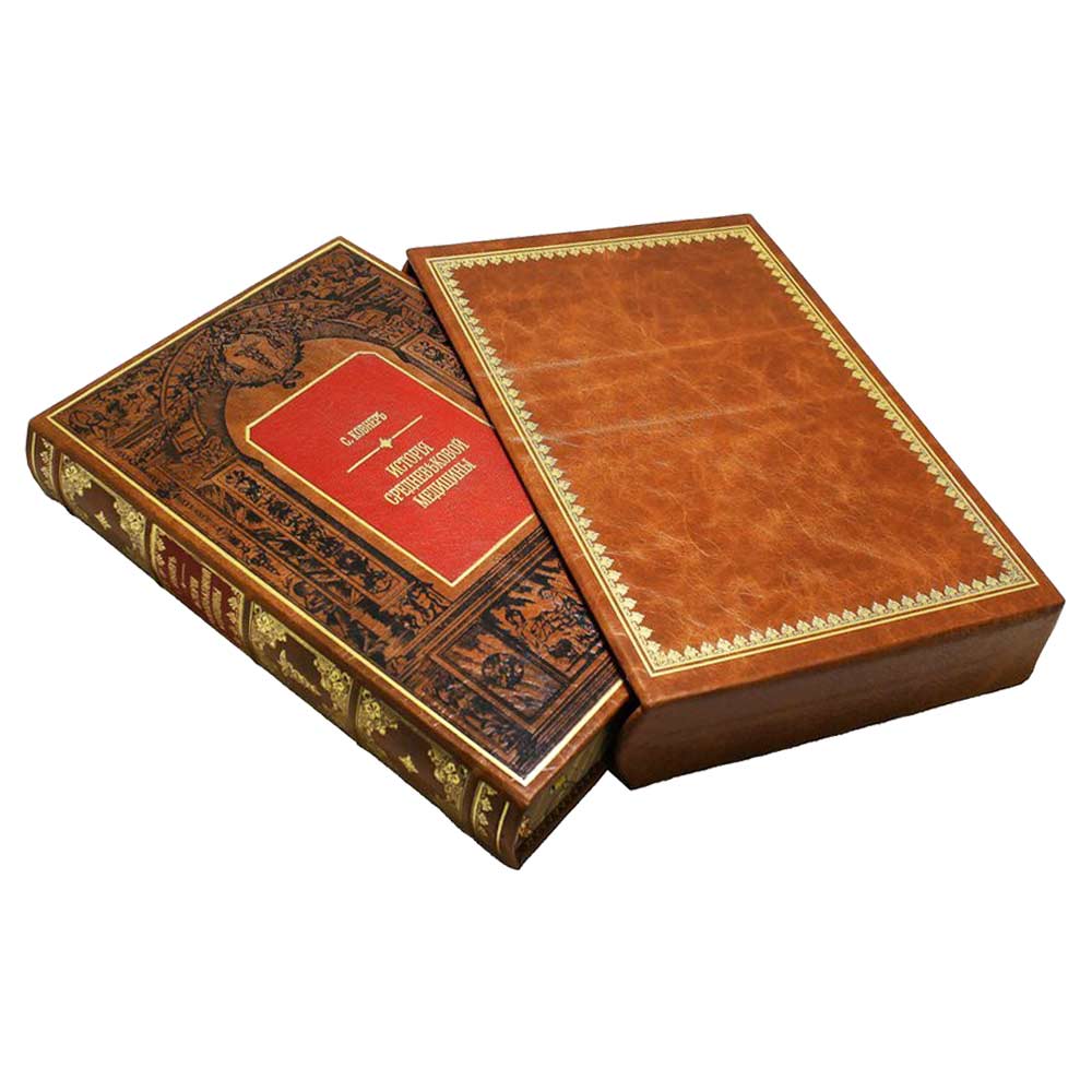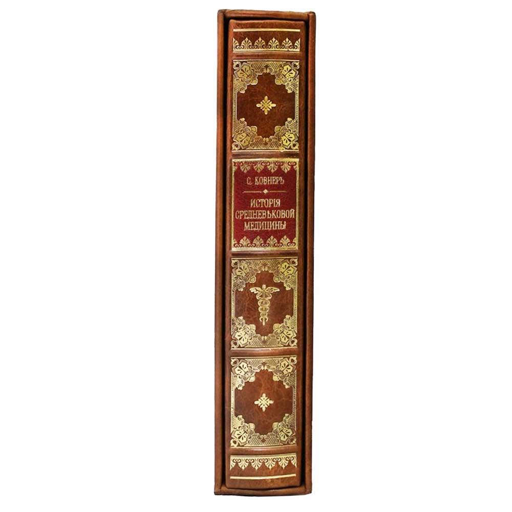 В оформлении переплета данного репринтного издания применяется уникальная технология "аппликации", выполненная из двух разных видов натуральной кожи. Золотое тиснение в сочетании с блинтом, крашеный обрез. Дублюра. Блок выполнен из высококачественной дизайнерской бумаги. Подарочная книга "История средневековой медицины" в кожаном переплете представляет собой репринтное издание монографии С. Ковнера, посвященной врачебным практикам европейских и арабских стран. Описываются различные медицинские школы, влияние национальных культур и прочие особенности, позволяющие получить получить множество информации и проследить путь развития медицинской науки в те времена.