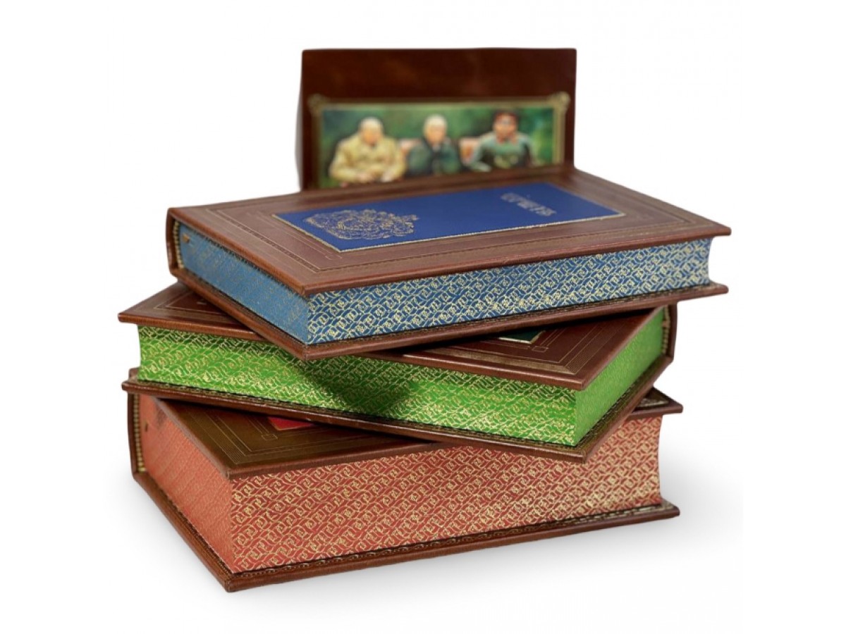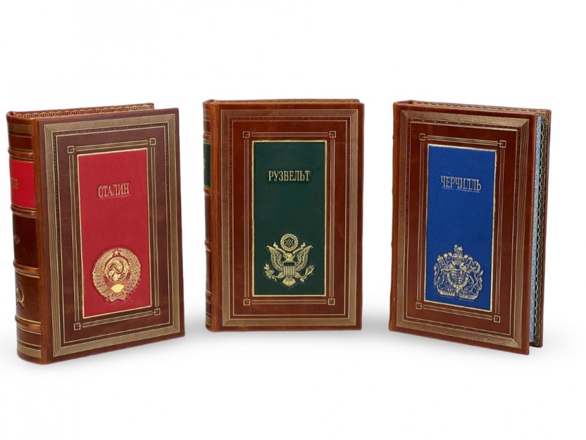 Особое внимание в оформлении издания уделено качеству: цельнокожаный переплет выполнен вручную, украшен цветной кожаной вставкой с золотым и блинтовым тиснением, а корешок декорирован бинтами. Текст отпечатан на мелованной бумаге высочайшего качества, краеный обрез выполнен с применением золотой накатки вручную. Внутренние листы дополнены ляссе из шелковой ленты, форзац изготовлен из дизайнерской бумаги и дублирован золотом. Кожаный футляр, вдохновлённый дизайном книги, обеспечивает сохранность издания и подчеркивает его эксклюзивность. Это подарочное издание станет украшением любой библиотеки и ценным источником знаний о трех великих лидерах истории. Закажите комплект сейчас и окунитесь в эпоху грандиозных политических перемен!