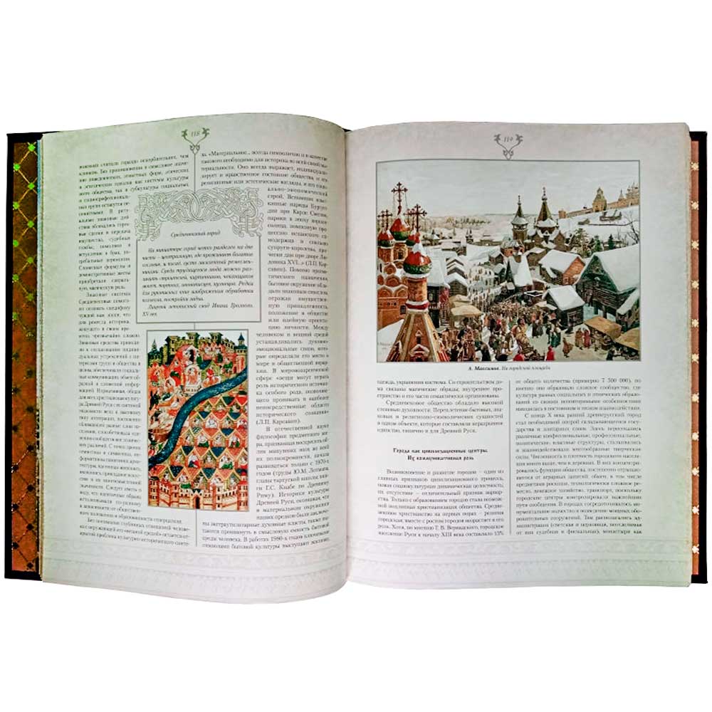Эксклюзивное издание "Цивилизация Древней Руси" – это уникальный продукт, представляющий собой элитный подарок для ценителей истории и искусства. Данная книга посвящена глубокому анализу материальной и духовной культуры древнерусских городов и монастырей в период с XI по XVII век. Читатель найдет в ней широкий обзор вопросов, связанных с происхождением цивилизации Восточной Европы, рассмотрением культурно-исторической роли крупных городских центров и их значением в развитии общества. Особенное внимание уделено таким темам, как урбанизация, процессы христианизации и зарождение письменной культуры восточных славян, что позволяет рассмотреть возникновение уникальной цивилизационной среды.