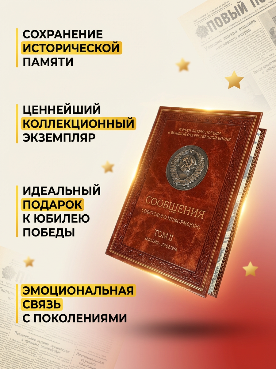 Если вы ищете действительно памятный и знаковый экземпляр для коллекции или достойный подарок ценителю истории — закажите Сообщения Советского информбюро в потрясающем исполнении уже сейчас!