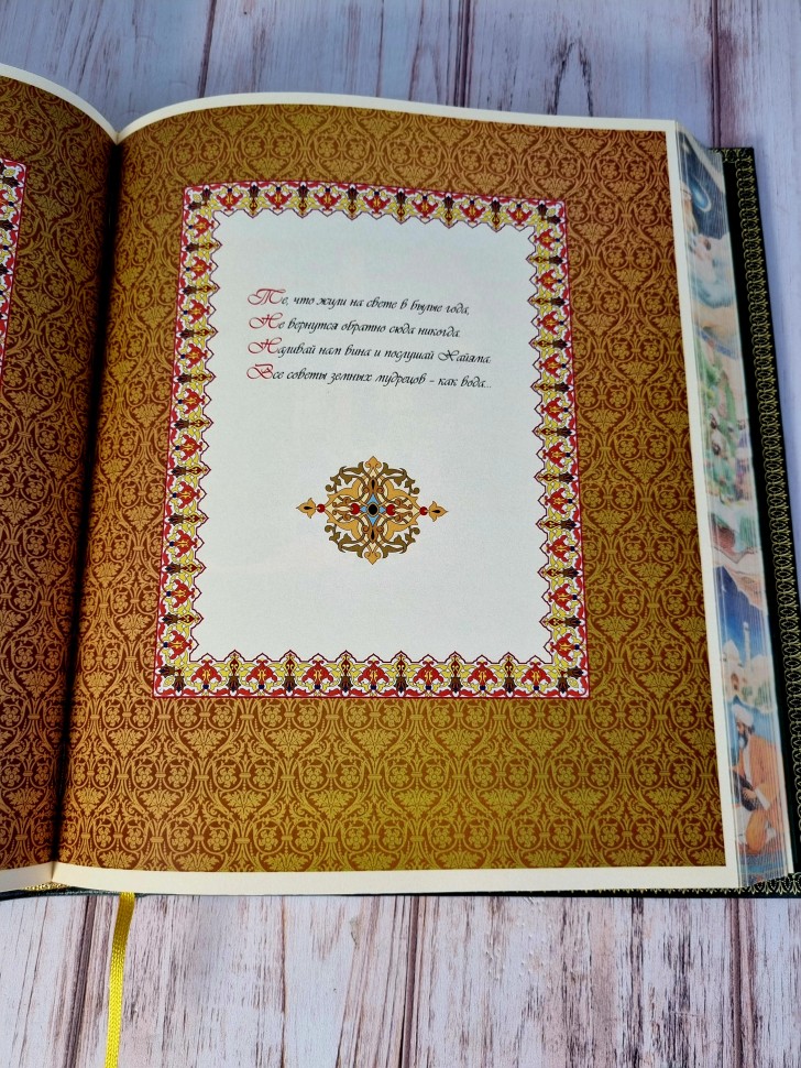 Подарочная книга "Рубайят" Омар Хайям — это эксклюзивное издание, отличающееся высоким качеством исполнения и богатым содержанием. Перед вами редкий экземпляр, который считается подарком премиум-класса для ценителей литературы. Это уникальное издание классической поэзии Омара Хайяма — выдающегося персидского поэта XI столетия, чьи мысли о вечных ценностях остаются актуальными и сегодня.