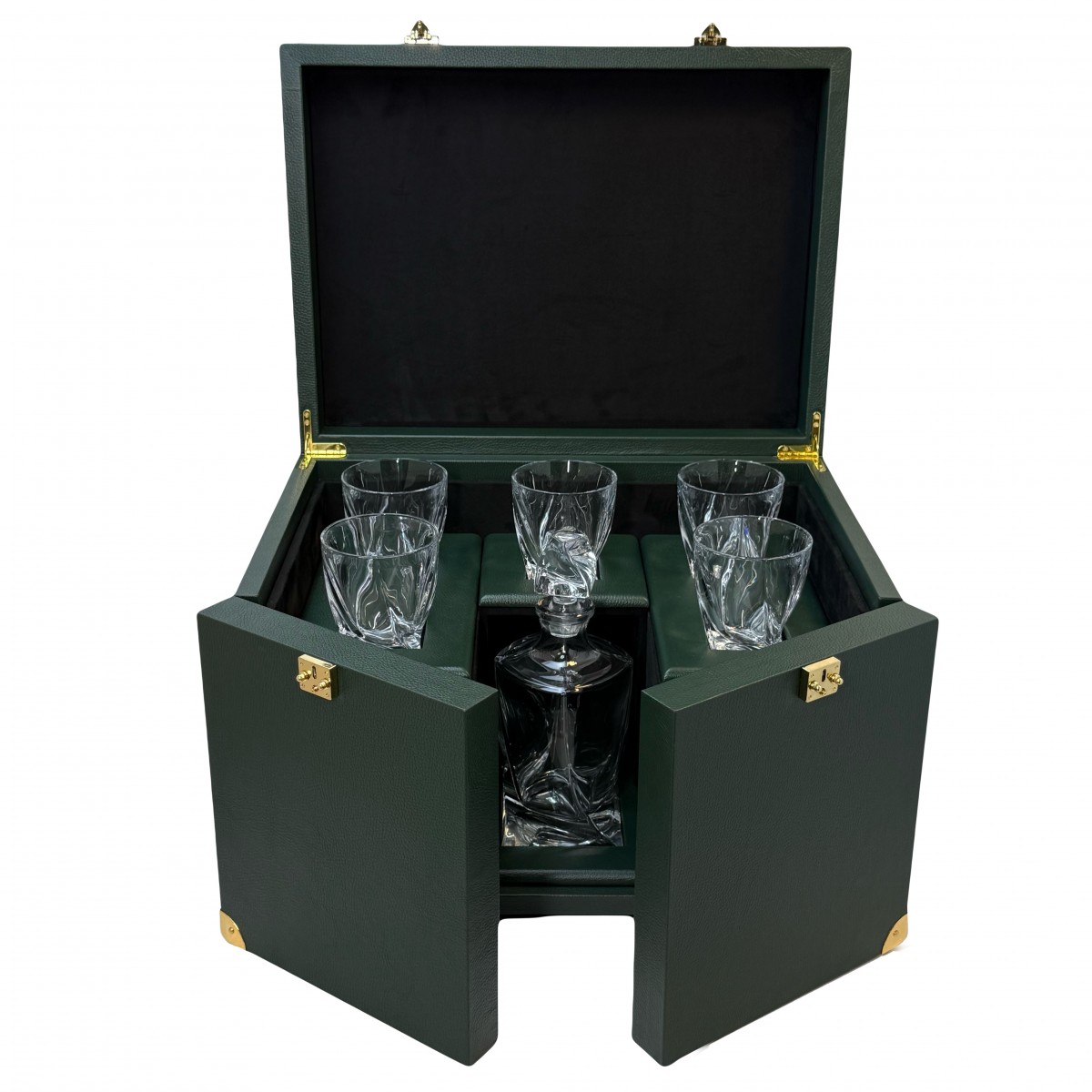 Интерьерный-бар с набором для виски представляет собой идеальное сочетание функциональности и изысканного дизайна, способное стать центральным элементом любого пространства. Этот подарочный комплект выполнен из натуральной кожи премиум-класса, изготовленной вручную с особым вниманием к деталям. В набор входит всё необходимое для проведения церемонии дегустации: шесть стаканов, графин «Богемия» из чешского стекла и камни для охлаждения напитков, что делает интерьерный-бар не только стильным, но и практичным аксессуаром.