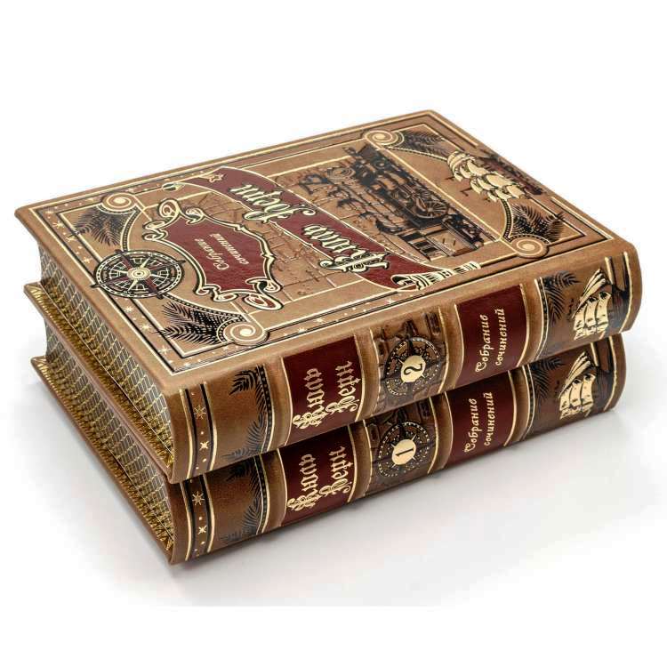 Подарочное издание "Жюль Верн. Собрание сочинений" в 12 томах – это уникальный подарок для истинных ценителей литературы. Издание оформлено в элегантном кожаном переплёте с рельефным и цветным тиснением, что придаёт ему великолепный внешний вид. Каждая книга напечатана на высококачественной дизайнерской бумаге. Книжные блоки тщательно сшиты вручную и отшлифованы, а обрезы страниц изящно тонированы с золотым узором, что свидетельствует о высоком уровне исполнения и внимании к деталям.